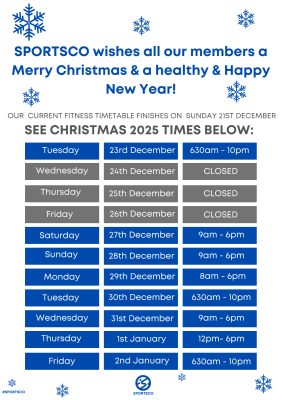 SPORTSCO wishes all our members a Merry Christmas and a healthy and Happy New Year!